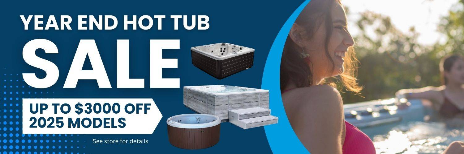 Year End Hot Tub Sale On Now! HUGE Showroom, SAVE Thousands.